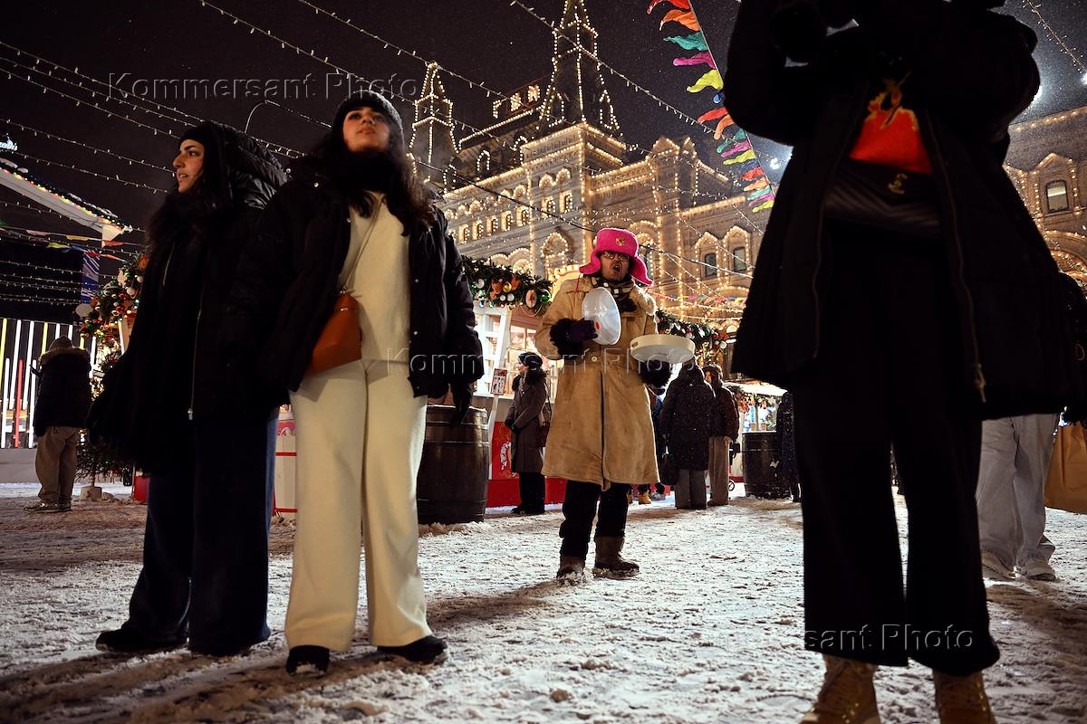 Виды Москвы. Жанровая фотография. ГУМ-ярмарка на Красной площади. Посетители на новогодней ГУМ-ярмарке.