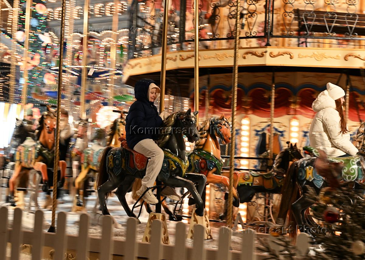 Views of New Year's Moscow. Genre photography. Venue of the street festival "Journey to Christmas" on Revolution Square.