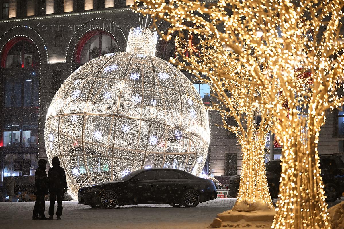 Genre photography. City New Year's decoration on Lubyanka Square.