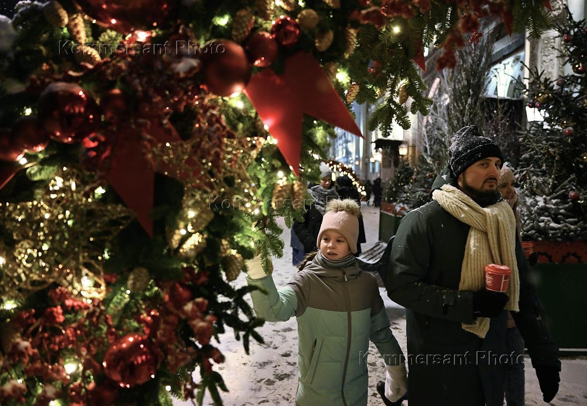 Виды новогодней Москвы. Жанровая фотография. Праздничное оформление на Никольской улице.