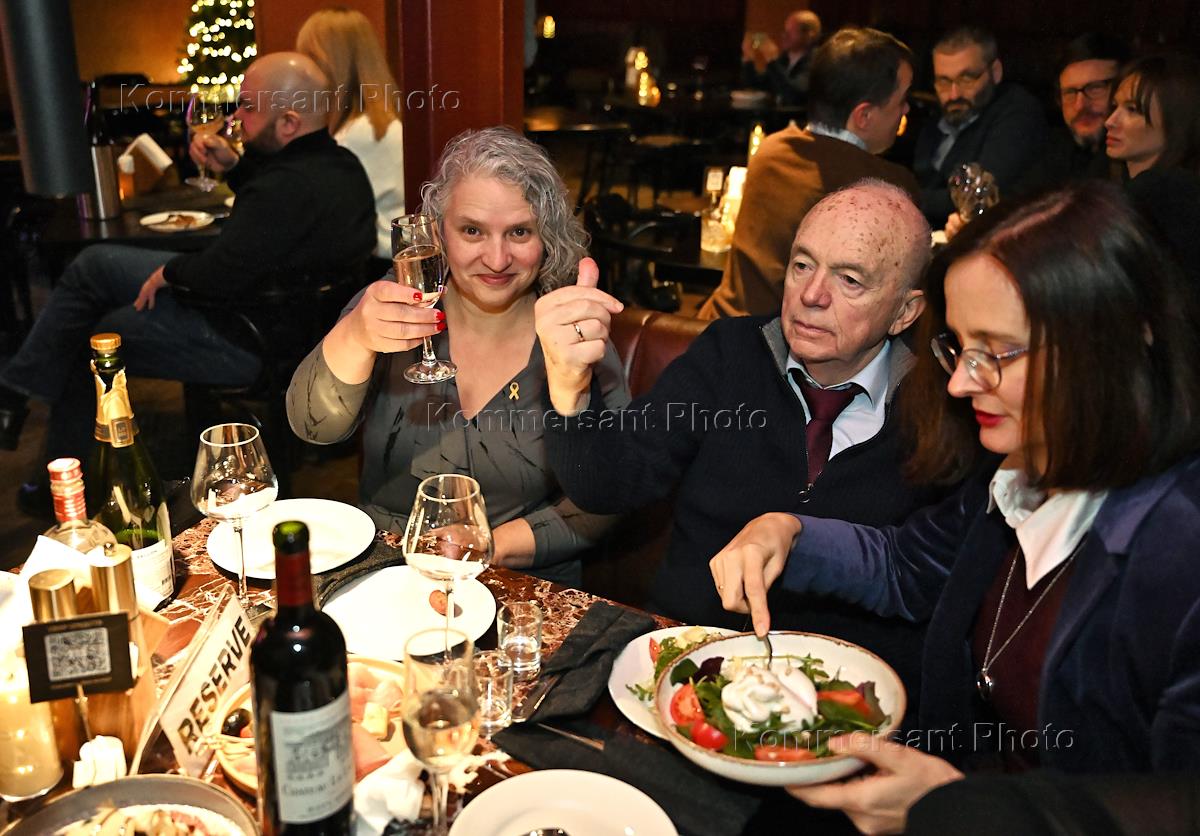 Предханукальный музыкальный благотворительный вечер "Ханукальные чудеса в джазе" в джаз-клубе Игоря Бутмана. Посол Израиля в России Симона Гальперин (слева) и председатель попечительского совета Российского еврейского конгресс (РЕК), основатель и президент клиники АО "Медицина" Григорий Ройтберг (в центре) на вечере.