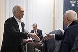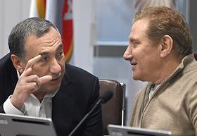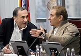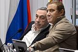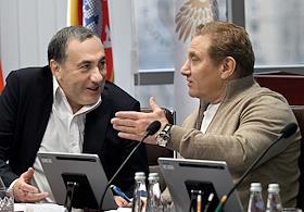 Заседание исполнительного комитета Российского Футбольного Союза (РФС) в Доме футбола. Вице-президент РФС, президент ПФК ЦСКА (Москва) Евгений Гинер (слева) и президент ФК "Сочи" Борис Ротенберг (справа) перед началом заседания.