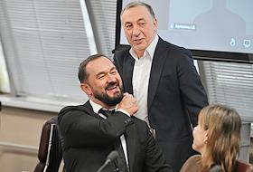 Заседание исполнительного комитета Российского Футбольного Союза (РФС) в Доме футбола. Первый вице-президент РФС Никита Симонян (слева) и вице-президент РФС, советник президента РФС Игорь Каменский (справа) перед началом заседания.