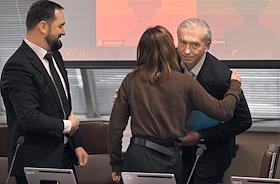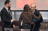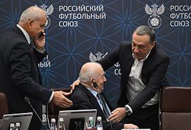 Заседание исполнительного комитета Российского Футбольного Союза (РФС) в Доме футбола. Слева направо: президент Союза ветеранов футбола России Александр Мирзоян, первый вице-президент РФС Никита Симонян и вице-президент РФС, президент ПФК ЦСКА (Москва) Евгений Гинер перед началом заседания.