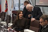 Заседание исполнительного комитета Российского Футбольного Союза (РФС) в Доме футбола. Первый вице-президент РФС Никита Симонян (в центре) и председатель комитета женского футбола Полина Юмашева (слева) перед началом заседания.