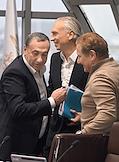 Заседание исполнительного комитета Российского Футбольного Союза (РФС) в Доме футбола. Слева направо: президент Ассоциации профессиональных футбольных клубов "Футбольная национальная лига" Наиль Измайлов, вице-президент РФС, президент ПФК ЦСКА (Москва) Евгений Гинер и председатель комитета женского футбола Полина Юмашева перед началом заседания.
