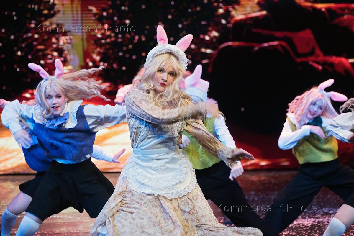 New Year's show "Eared Stories" staged by choreographer Svyatoslav Melnikov on the stage of the Boris Eifman Dance Academy Theater. Show participant Maya Moskalets during the performance.
