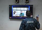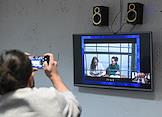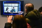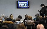 Оглашение решения по жалобам на приговор режиссеру Евгении Беркович и драматургу Светлане Петрийчук по делу об оправдании терроризма при постановке пьесы "Финист ясный сокол" в Апелляционном военном суде. Режиссер Евгения Беркович и драматург Светлана Петрийчук (на экране) во время заседания суда.