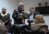 Оглашение решения по жалобам на приговор режиссеру Евгении Беркович и драматургу Светлане Петрийчук по делу об оправдании терроризма при постановке пьесы "Финист ясный сокол" в Апелляционном военном суде. Журналист Дмитрий Муратов (признан иноагентом) (в центре) в здании суда.