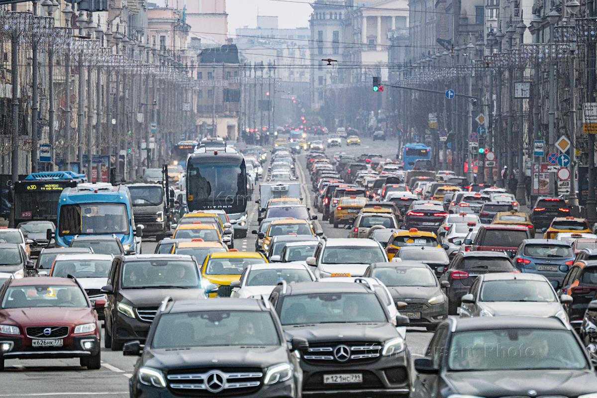 Жанровая фотография. Автомобильный поток на Тверской улице.