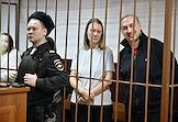 Оглашение приговора бывшему руководителю департамента развития фармацевтической и медицинской промышленности Минпромторга России Ольге Колотиловой, ее заместителю Ольге Покидышевой и другим фигурантам дела о хищении 450 млн рублей, выделенных на реализацию госпрограммы "Фарма-2020", в Таганском районном суде. Справа налево: бывший президент Федераций водного поло, синхронного плавания и прыжков в воду Алексей Власенко, бывший руководитель департамента развития фармацевтической и медицинской промышленности Минпромторга России Ольга Колотилова и предприниматель Эльмира Зубкова во время заседания суда.