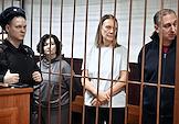 Оглашение приговора бывшему руководителю департамента развития фармацевтической и медицинской промышленности Минпромторга России Ольге Колотиловой, ее заместителю Ольге Покидышевой и другим фигурантам дела о хищении 450 млн рублей, выделенных на реализацию госпрограммы "Фарма-2020", в Таганском районном суде. Бывший руководитель департамента развития фармацевтической и медицинской промышленности Минпромторга России Ольга Колотилова (вторая справа), ее заместитель Ольга Подкидышева (слева) и бывший президент Федераций водного поло, синхронного плавания и прыжков в воду Алексей Власенко (справа) во время заседания суда.