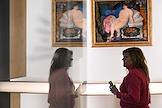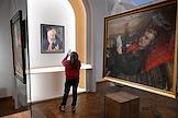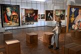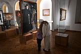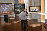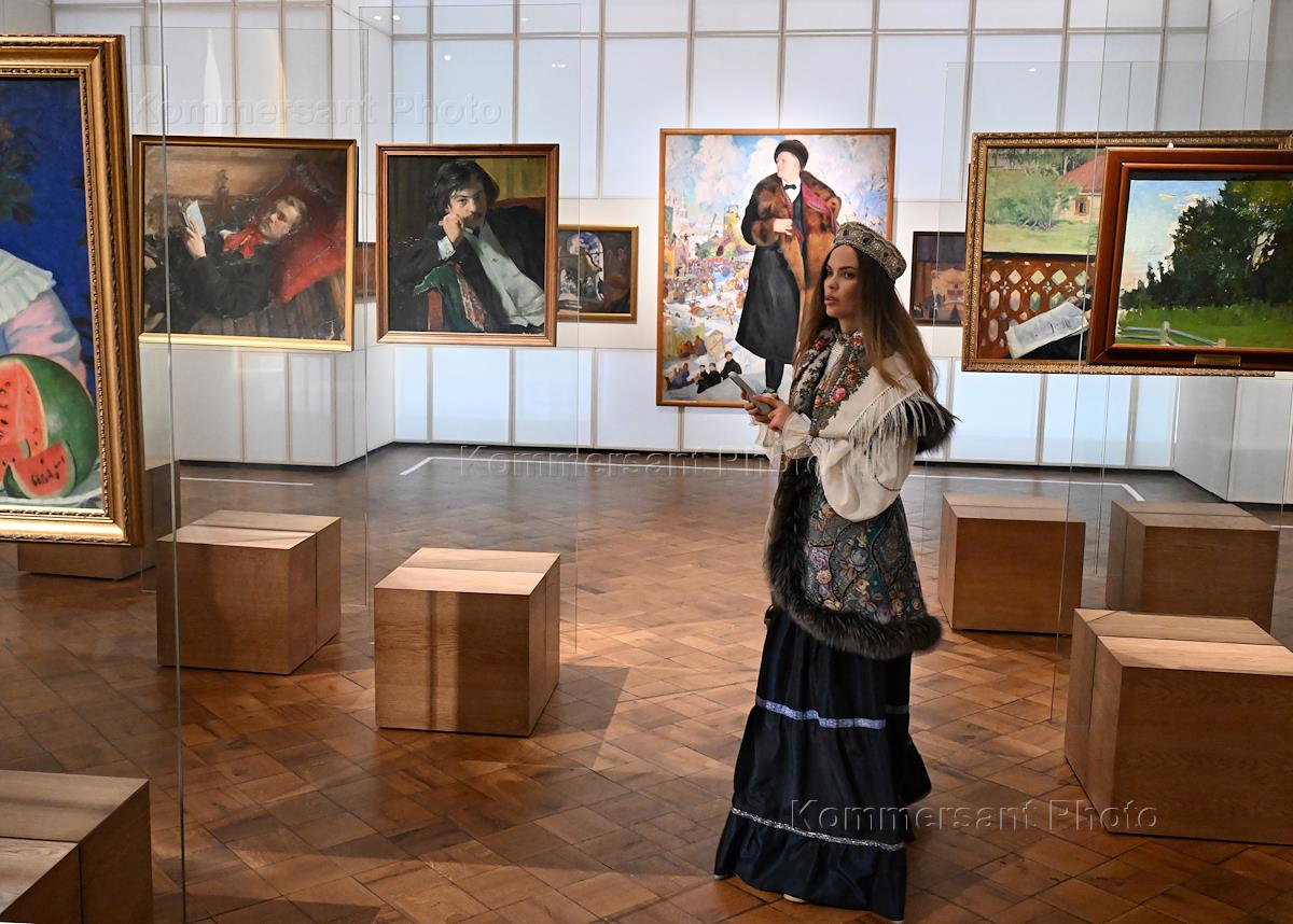 Выставка "Борис Кустодиев. Патриархальная Россия" в Крестовой палате Суздальского кремля. Посетители на выставке.