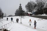 Views of Suzdal. Genre photography. Tourists while walking around the city.