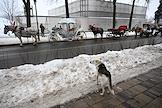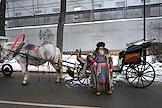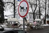Views of Suzdal. Genre photography. Vintage carts waiting for tourists.