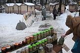 Views of Suzdal. Genre photography. Christmas tree on the Trade Square.