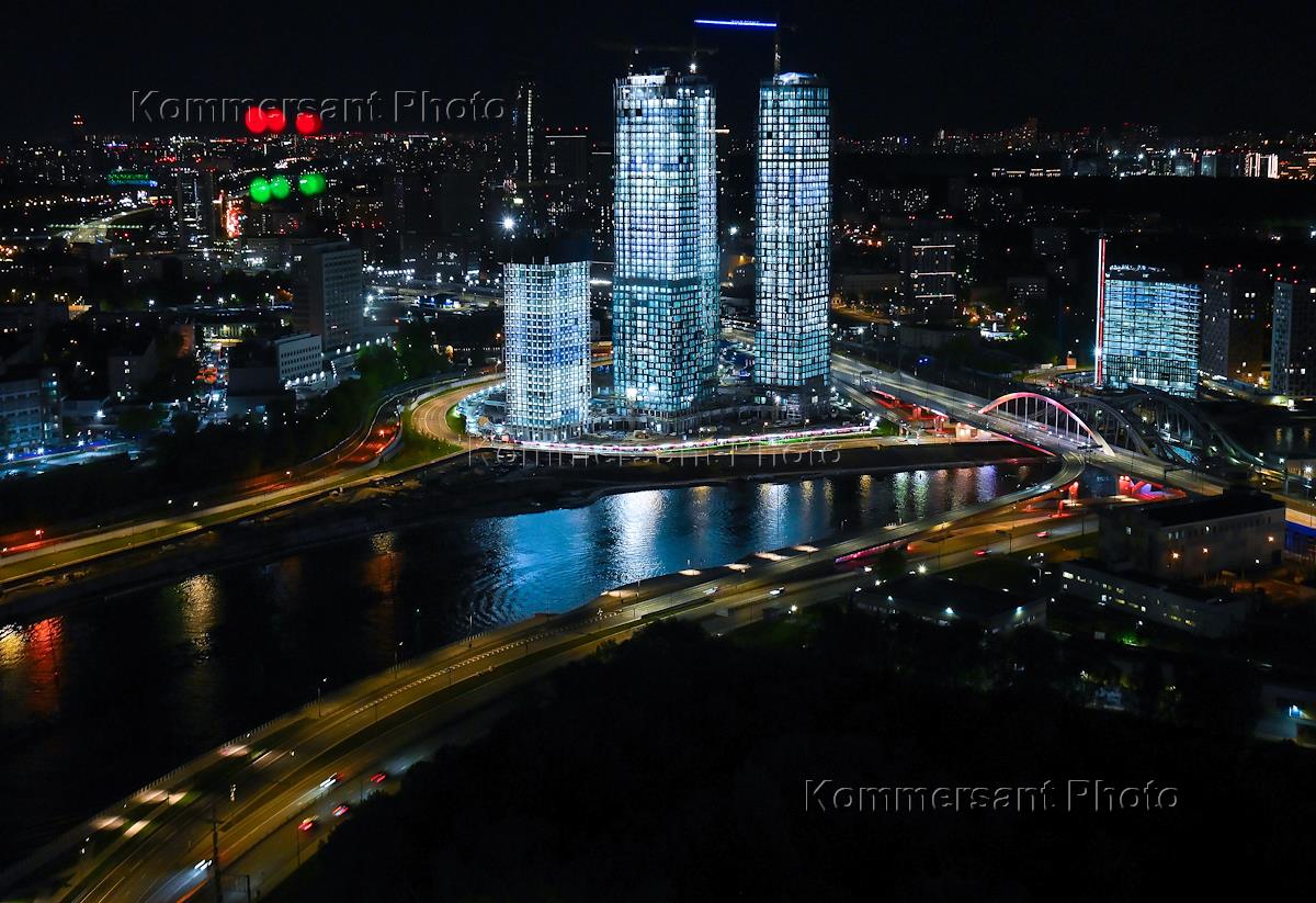 Виды Москвы. Жанровая фотография. Жилой комплекс (ЖК) "Западный порт" на берегу Москвы-реки.