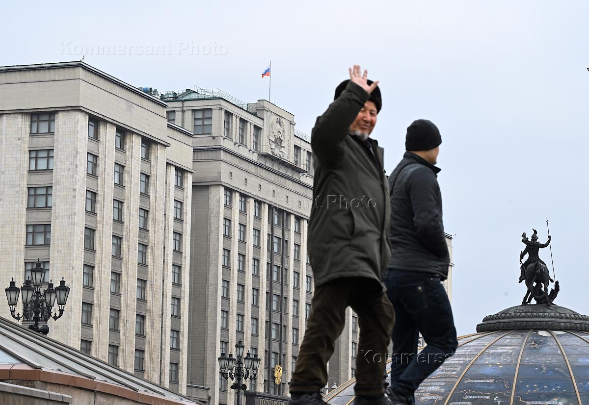 Views of Moscow. The building of the State Duma of Russia on Okhotny Ryad Street. Genre photography.