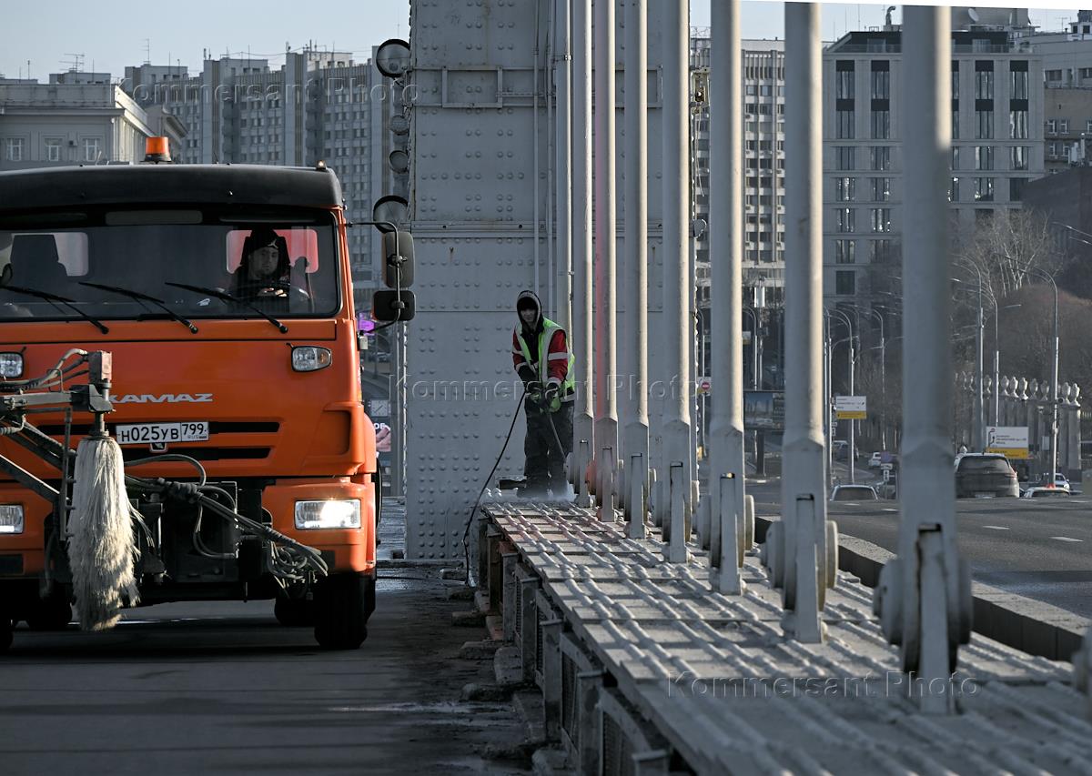 Views of Moscow. Genre photography. Employees of SpetsDorProekt during work on Moskvoretskaya embankment.