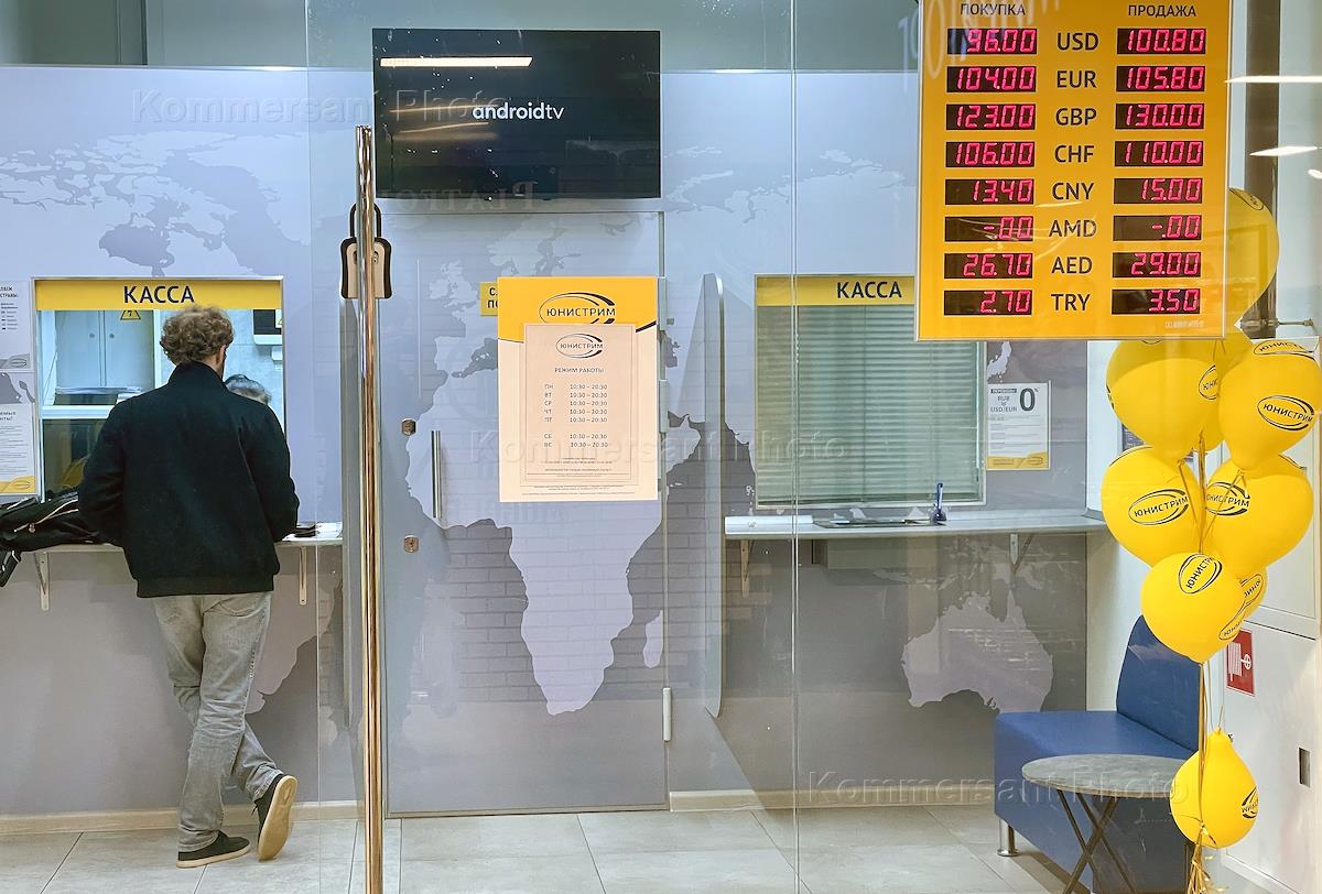 Genre photography. A man at a currency exchange office.