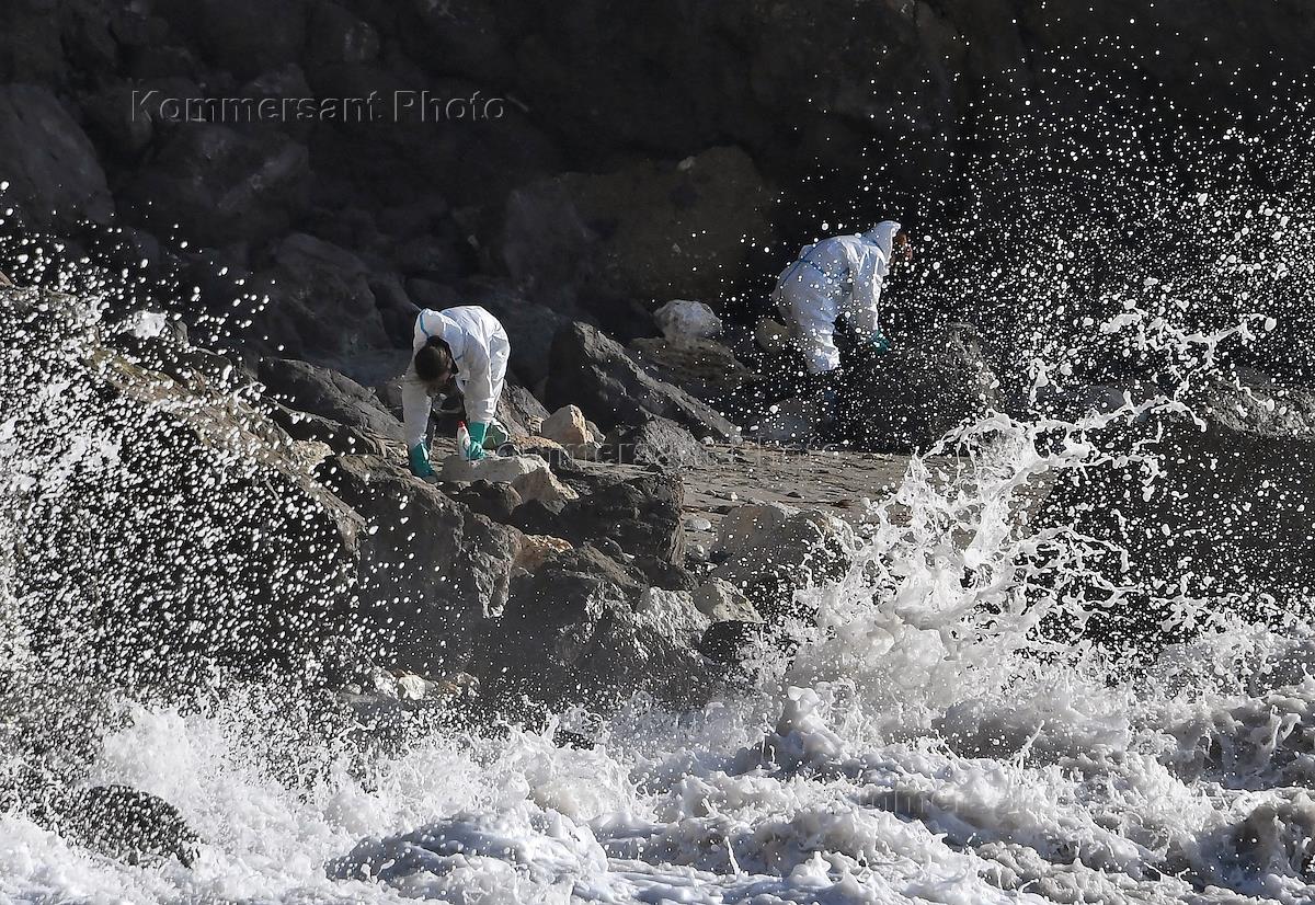 Elimination of the consequences of an oil spill due to the disaster of two Volgoneft tankers in the Kerch Strait on the afternoon of December 15, 2024. Work to clean up the coast of Sevastopol contaminated with fuel oil. Volunteers and local residents work on the Tsarskoye Selo beach at Cape Fiolent.