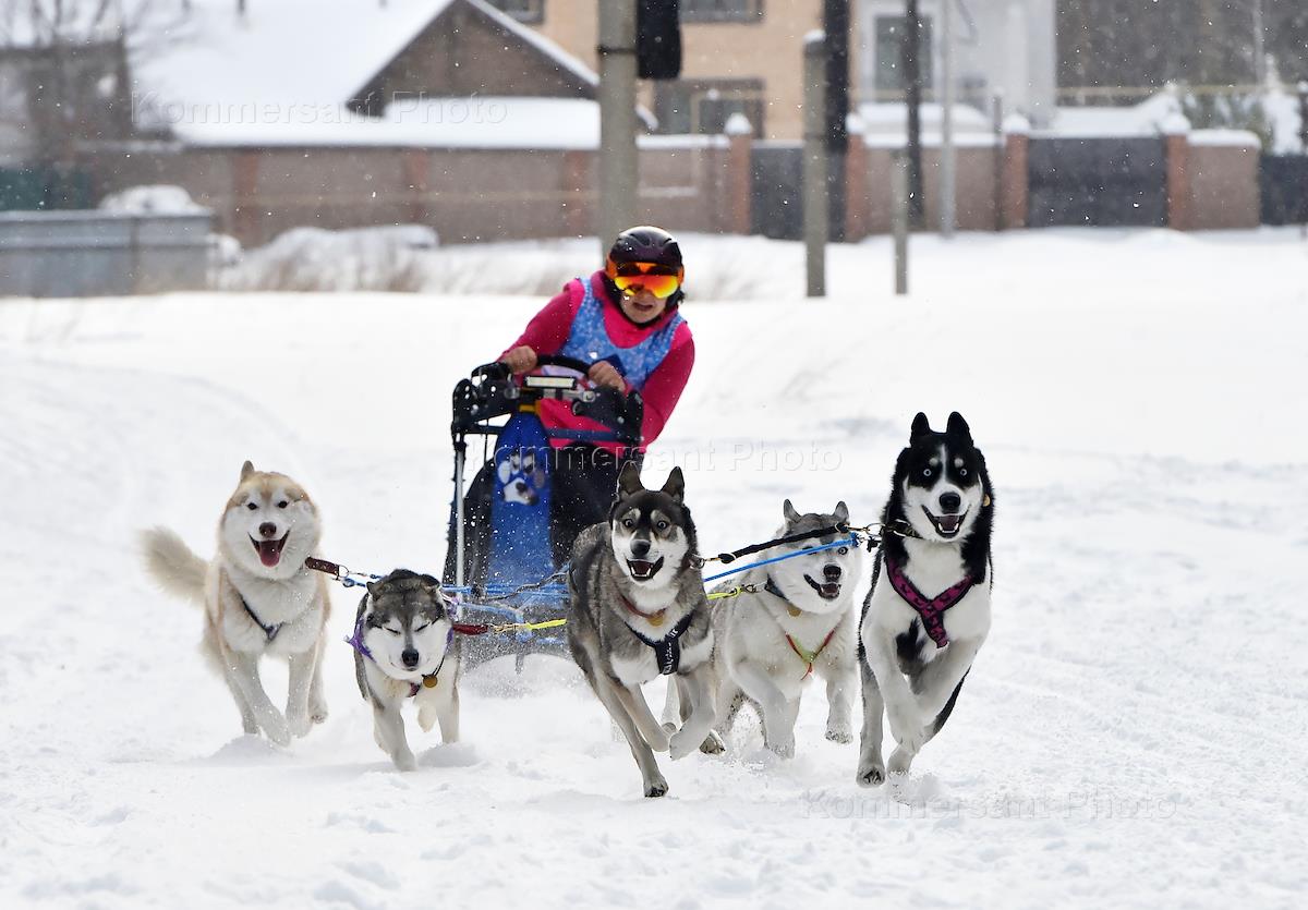 Чемпионат по ездовому спорту на собачьих упряжках "Рождественский заезд - 2025" на лыжной базе "Метелица" в городе Бердске Новосибирской области. Жанровая фотография.