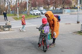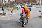 Виды Екатеринбурга. Жанровые фотографии. Девочка на велосипеде рядом с мамой.