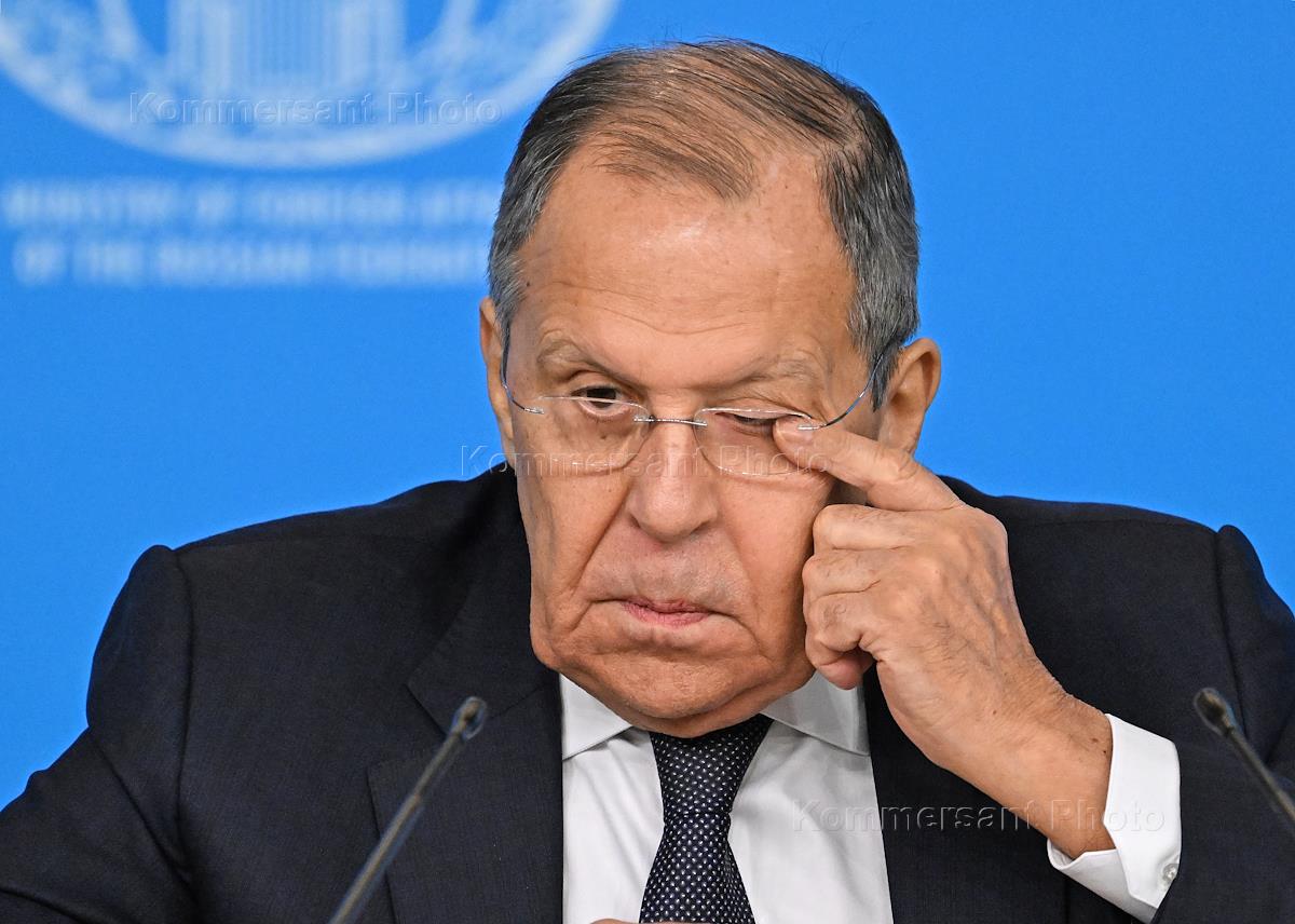 Министр иностранных дел России Сергей Лавров во время пресс-конференции, посвященной итогам деятельности российской дипломатии в 2024 году, в пресс-центре МИД России.