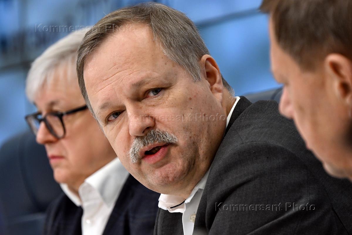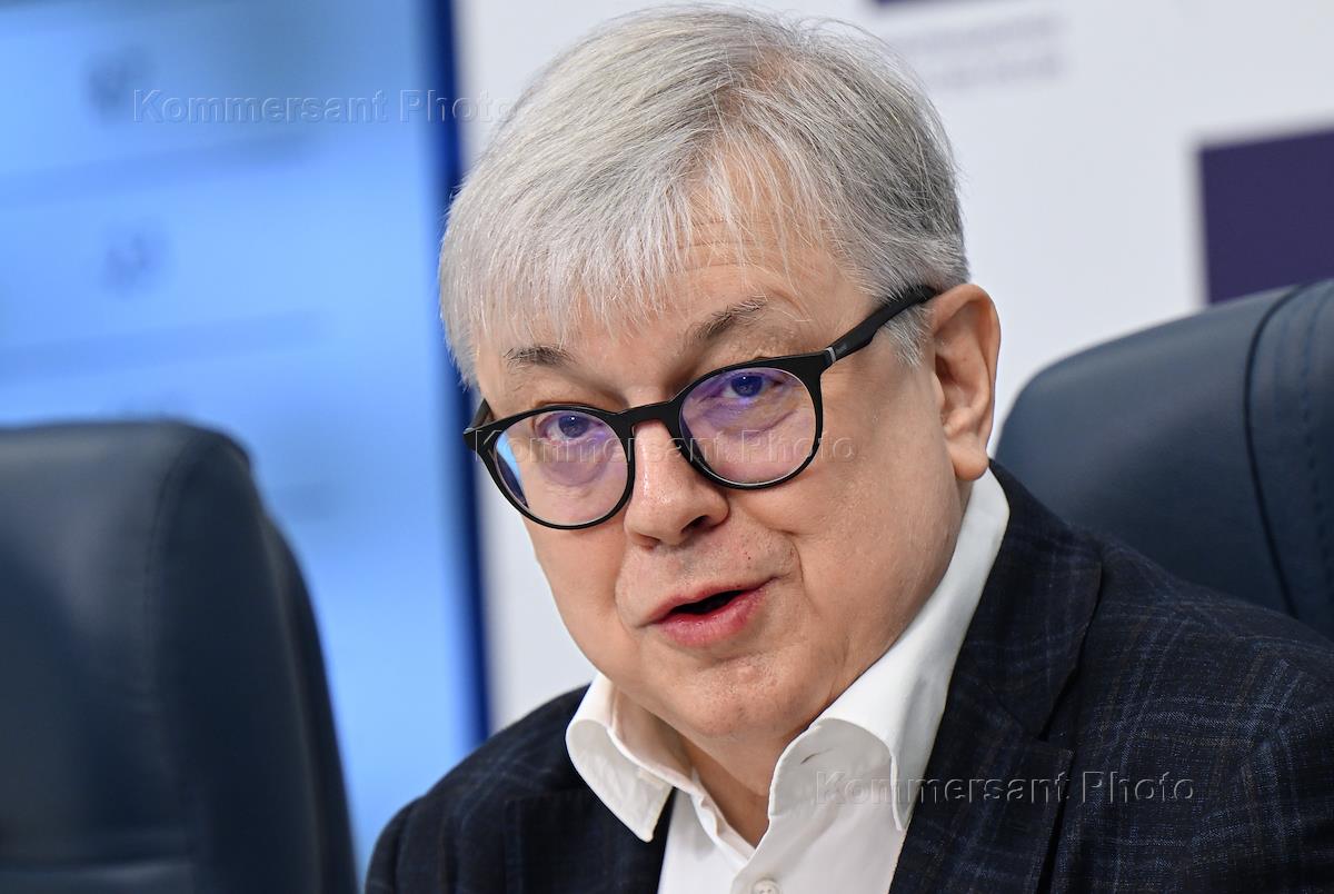 Пресс-конференция, посвященная результатам мониторинга качества приема (МКП) в российские университеты в 2024 году, в пресс-центре ТАСС. Ректор МГТУ имени Н.Э. Баумана Михаил Гордин во время пресс-конференции.