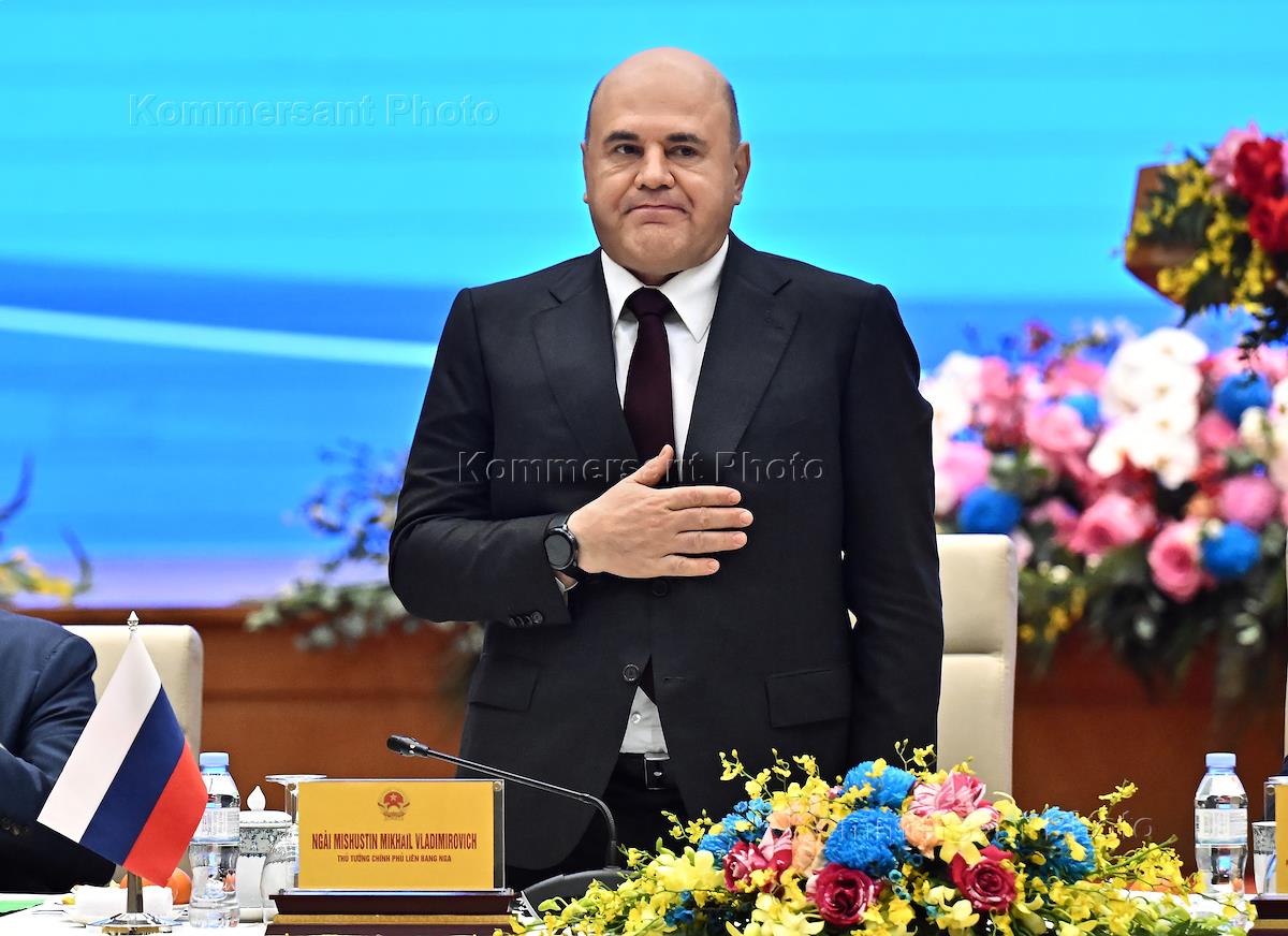 Working trip of Russian Prime Minister Mikhail Mishustin to Vietnam. Ceremony of presenting Russian state awards to Vietnamese officials. Russian Prime Minister Mikhail Mishustin during the ceremony.