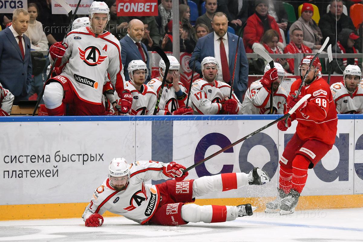 Kontinental Hockey League (KHL). Championship season 2024/25. Match between the teams "Spartak" (Moscow) - "Avtomobilist" (Ekaterinburg) at the Megasport Sports Palace.