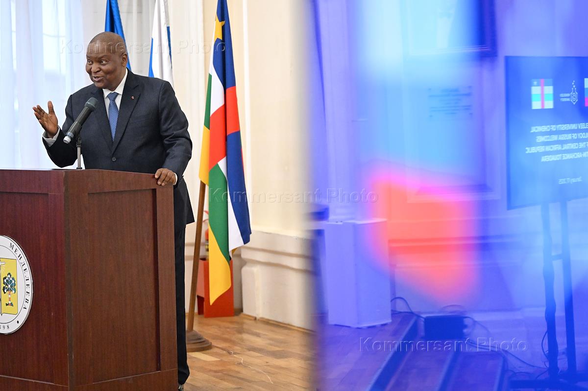 Meeting with students as part of the official visit to Russia of the President of the Central African Republic (CAR) Faustin-Archange Touadera at the Mendeleev University of Chemical Technology of Russia (MUCTR). CAR President Faustin-Archange Touadera during the meeting.