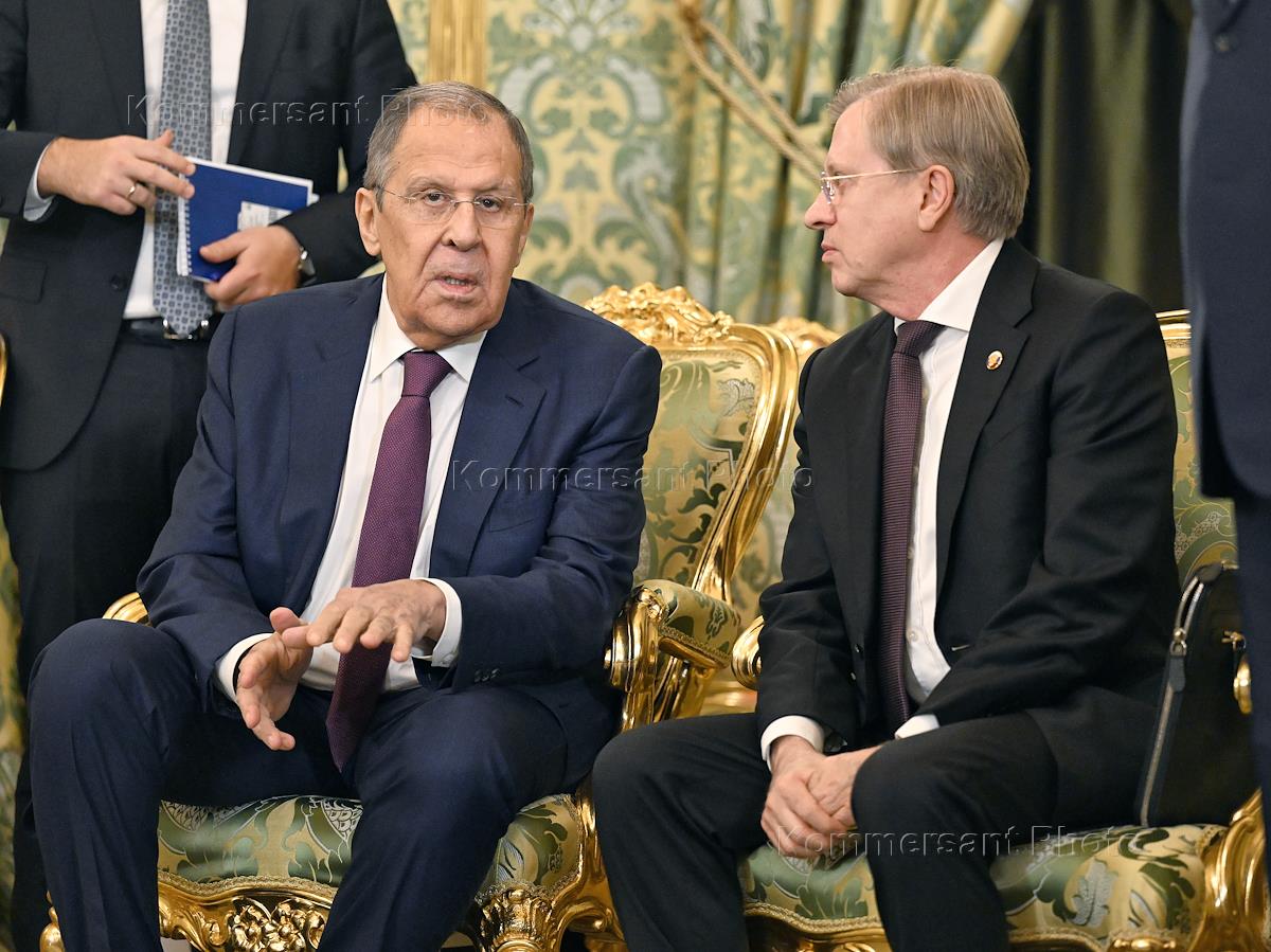 Meeting between Russian President Vladimir Putin and Iranian President Masoud Pezeshkian at the Grand Kremlin Palace. Russian Foreign Minister Sergei Lavrov (center) before the meeting.