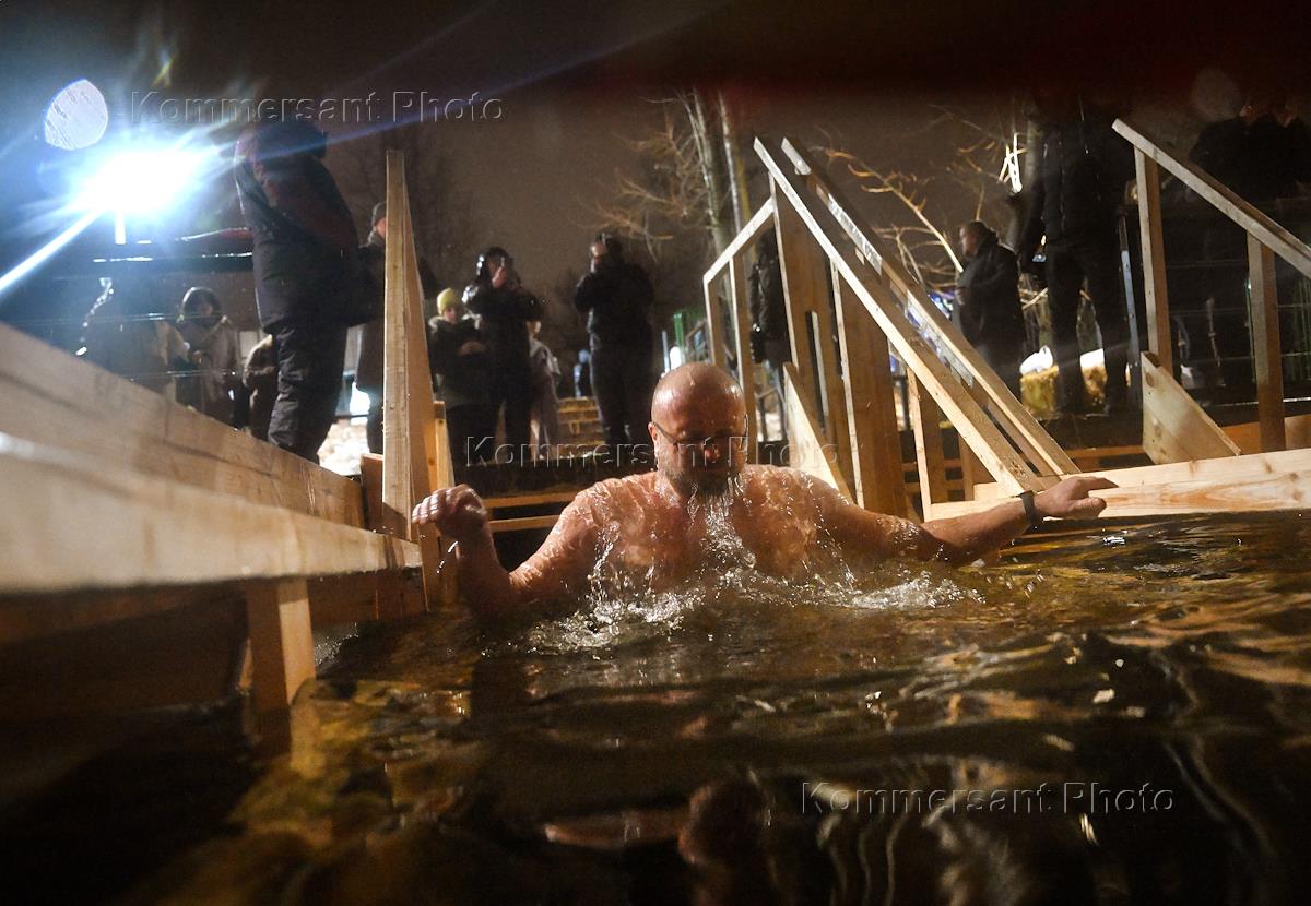 Feast of the Epiphany. Believers during Epiphany bathing in the Bolshoi Vorontsov Pond.
