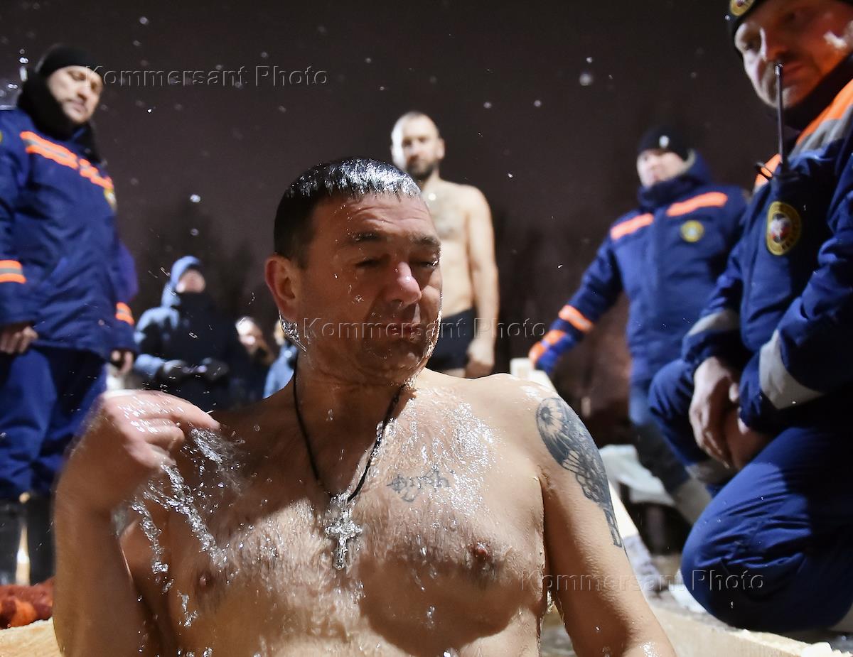 Feast of the Epiphany. Epiphany bathing on the Ob River in the Zaton area in Novosibirsk.