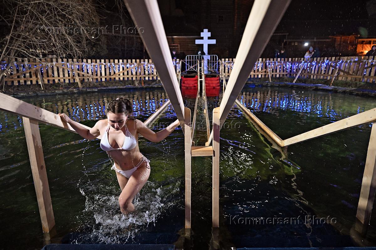 Feast of the Epiphany. Believers during Epiphany bathing in the font on the territory of the exhibition-fair "Vernissage in Izmailovo".