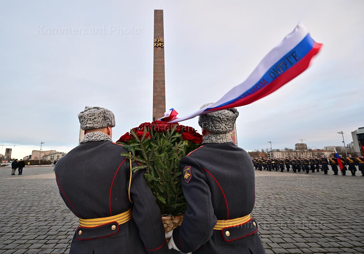 Events on the Day of Breaking the Leningrad Siege. Flower-laying ceremony at the monument to the “Heroic Defenders of Leningrad” on Victory Square on Moskovsky Prospekt.