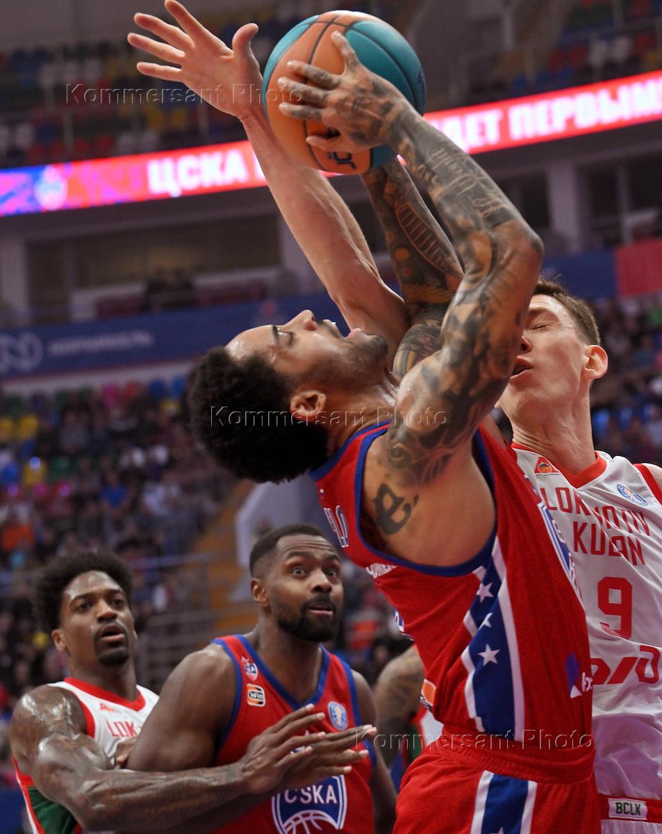Единая лига ВТБ 2024/2025. Баскетбол. Матч между командами ЦСКА (Москва) и "Локомотив-Кубань" (Краснодар) на стадионе "Мегаспорт". Жанровая фотография.