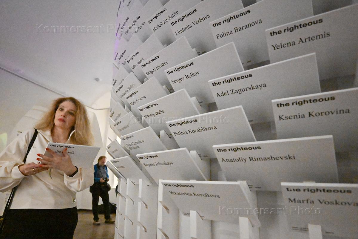 Церемония открытия совместного проекта Московского музея современного искусства (MMOMA) и Российского еврейского конгресса (РЕК) памяти жертв холокоста "Спасители. Пути спасения" в ММОМА. Посол Израиля в России Симона Гальперин (слева) на церемонии.