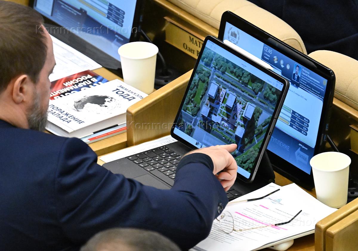 Plenary meeting of the State Duma of Russia. Member of the Russian State Duma Committee on Construction and Housing and Communal Services Sergei Kolunov during a meeting.