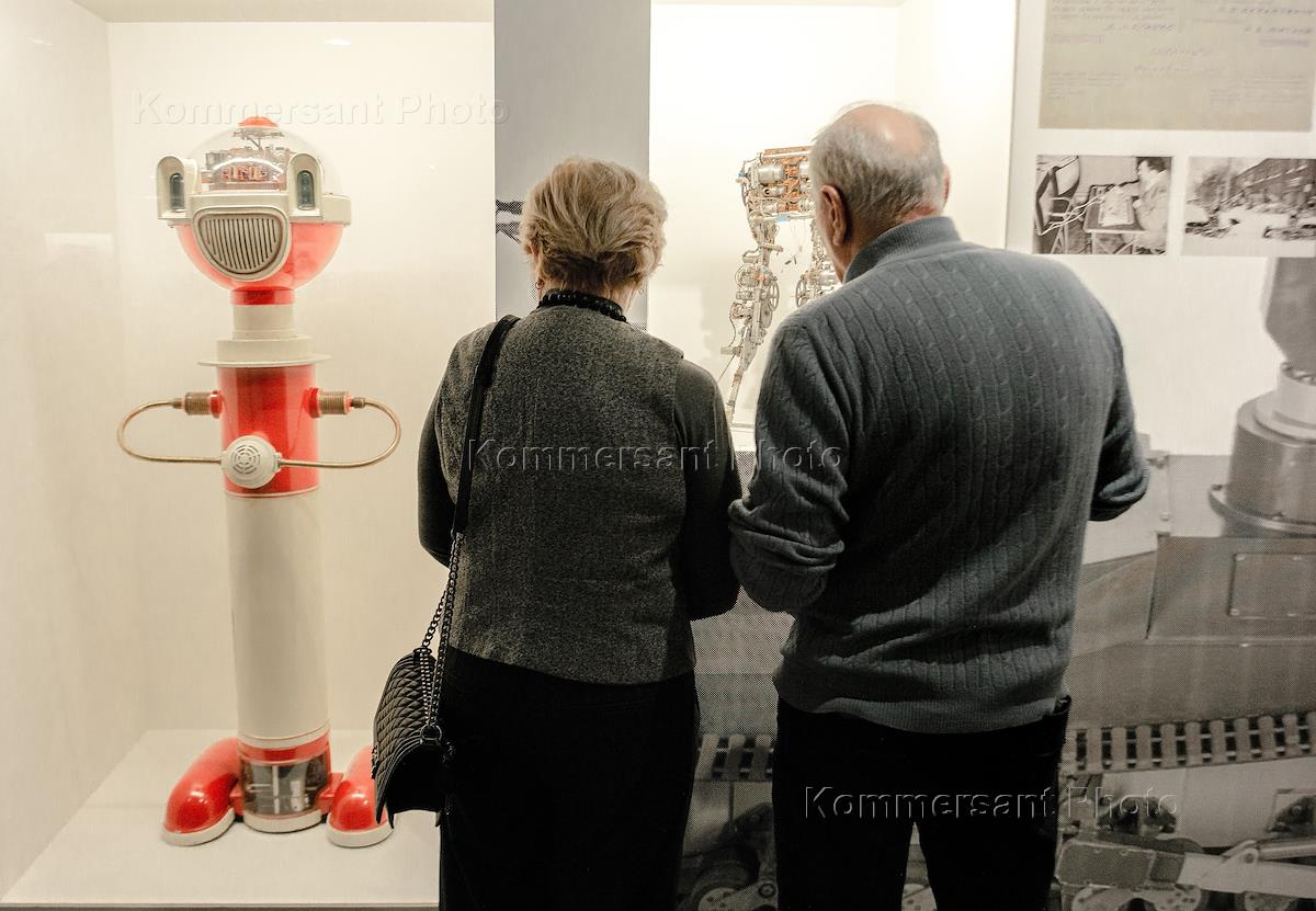 Выставочный проект "Политехнический музей: создавая настоящее" в Центральном выставочном зале "Манеж". Посетители на выставке.