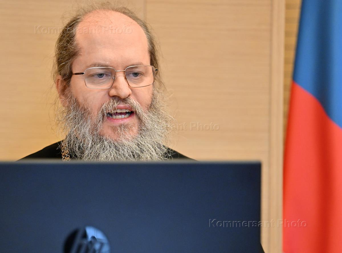 Церемония открытия пилотного проекта по продвижению культурно-исторического наследия России среди участников Международного движения по финансовой безопасности в Финансовом университете при правительстве России. Игумен, наместник Сретенского монастыря, исполняющий обязанности ректора Сретенской духовной академии Иоанн (Дмитрий Лудищев) на церемонии.