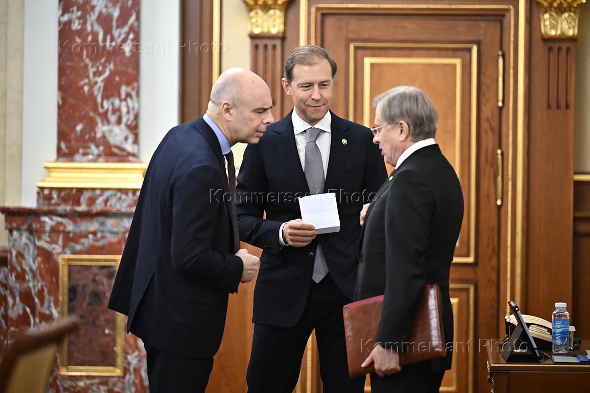 Meeting of the Russian government. From left to right: Russian Finance Minister Anton Siluanov, First Deputy Prime Minister of Russia Denis Manturov and Deputy Prime Minister of Russia Vitaly Savelyev before the start of the meeting.