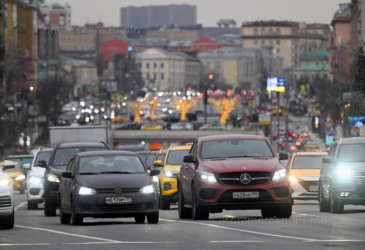 Views of Moscow. Genre photography. Traffic in the city center.
