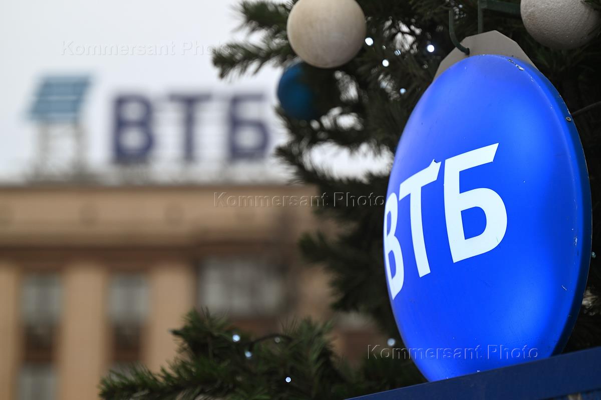 Виды Москвы. Жанровая фотография. Елочная игрушка с логотипом банка ВТБ на новогодней городской елке.
