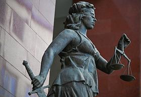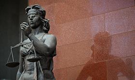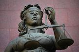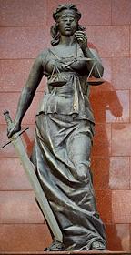 Genre photography. Statue of the goddess of justice Themis in the hall of the Odintsovo city court.