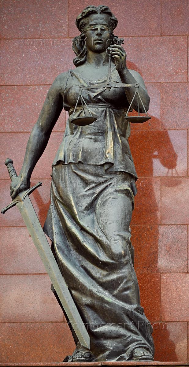 Жанровая фотография. Статуя богини правосудия Фемиды у входа в здание Одинцовского городского суда.