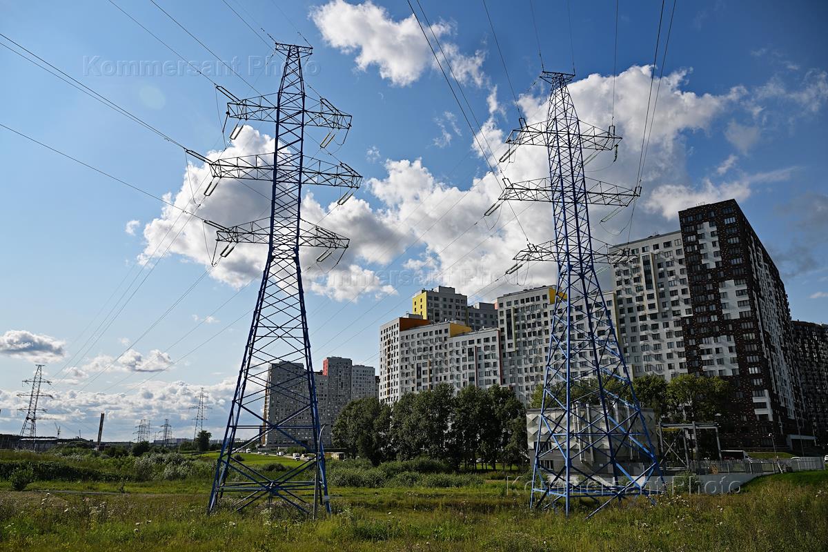 Виды Москвы. Жанровая фотография. Линии электропередачи (ЛЭП) на фоне жилого микрорайона.