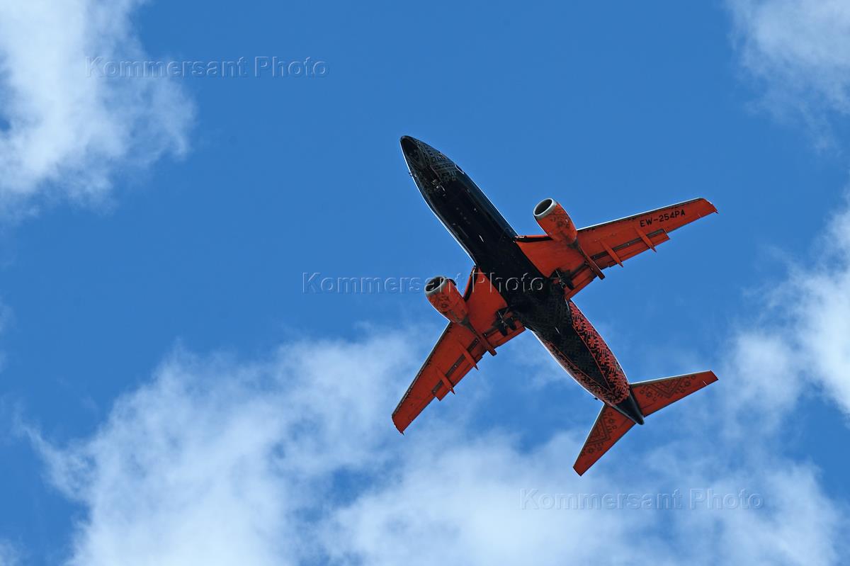 Жанровая фотография. Самолет авиакомпании "Россия" в небе.