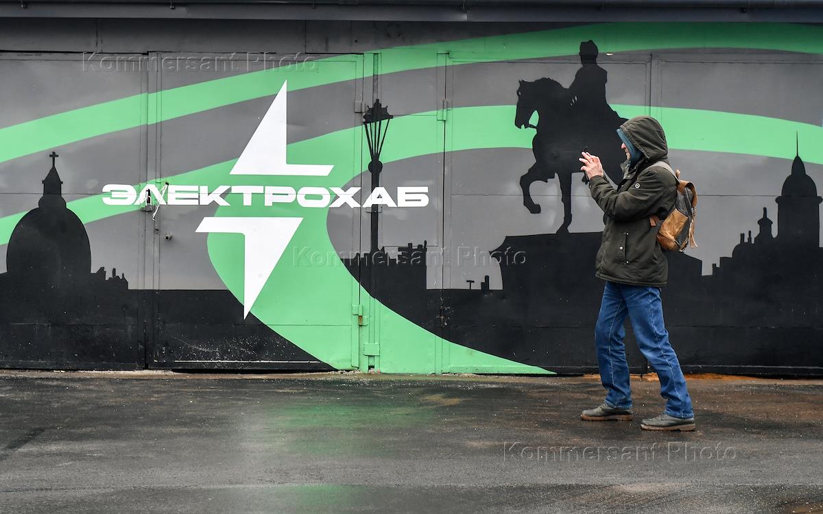 Opening ceremony of the Vyborgsky electric hub (electric vehicle charging station) at 26 Zhukova Street. Genre photography.